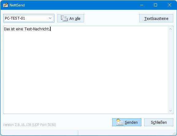 Tipp: Zum Versenden von Nachrichten genügt ein Klick auf das kleine NettSend-Symbol in der Taskleiste neben der Uhr. Falls das Symbol ausgeblendet ist, kann das über "Benachrichtungssymbole anpassen" (Rechtsklick auf die Uhr) korrigiert werden.